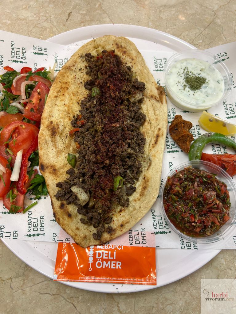 Kebapçı Deli Ömer self-servis bir yer. Ancak bu sizi yanıltmasın; burada kebap fast food gibi “çabuk” değil, “usta işi” olarak hazırlanıyor. Yani hızla alıyorsunuz ama her lokmada arka plandaki emeği hissediyorsunuz.