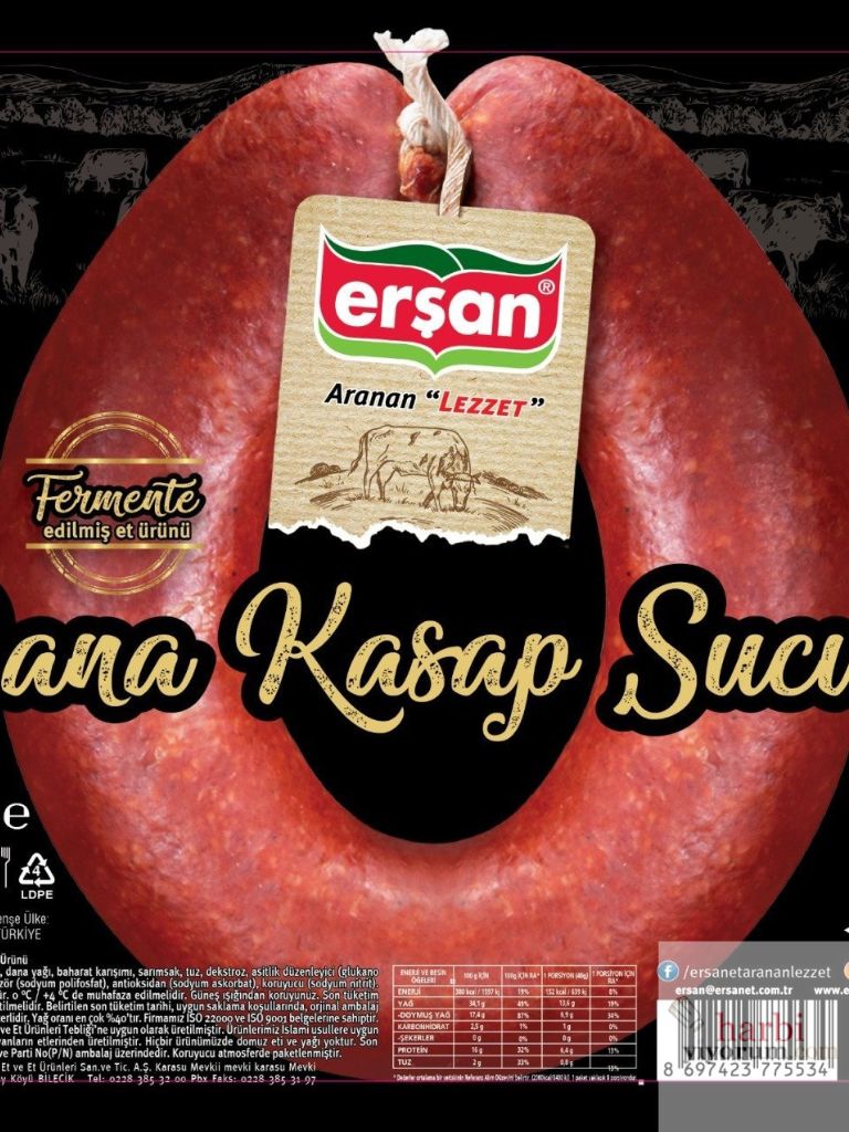 Bir Bilecik markası olan Erşan Et, 1999 yılında kuruluyor. Bilecik’te büyükbaş hayvan çiftliği olan Erşan Et, her geçen yıl et işleme kalitesini artıran bir firma. Bilecik ili Küplü nahiyesinde küçük bir kasap dükkânı ile başlayan yolculuğunu 3 nesildir sürdüren markanın sucukları da ürettikleri diğer et çeşitleri gibi çok başarılı.